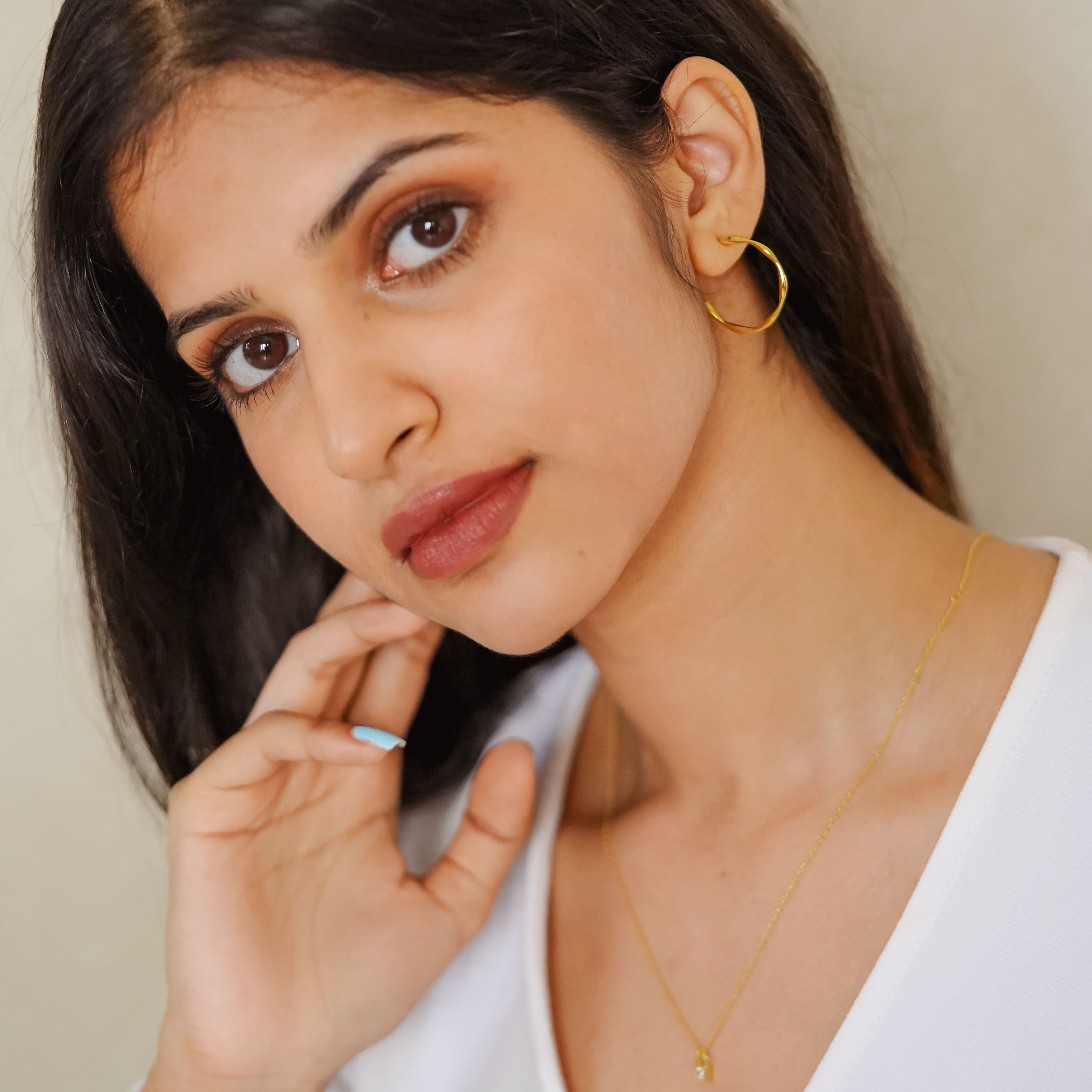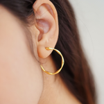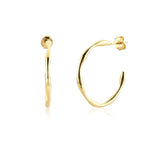 These gold open hoops are a statement piece in itself. The wave-like feel as the hoop curves screams gives you that nature artistic look. These hoops are fit to be worn with anything - adding art to any outfit.